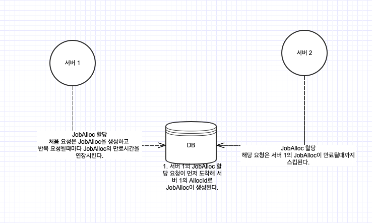 Mysql에서 JobAlloc을 조회하는 코드는 SELECT FOR UPDATE 을 사용해서 row lock을 걸어 가장 먼저 lock을 획득한 세션만 수정할 수 있도록 제약한다.