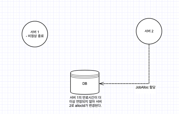 현재 작업을 수행하고 있는 인스턴스가 종료가 되면 해당 JobAlloc의 만료시간(endDateTime)이 더 이상 연장되지 않는다.