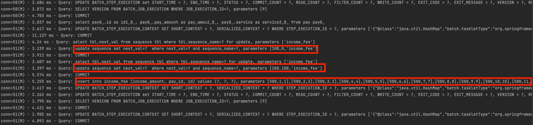 하나의 청크로 묶인 쿼리는 아래와 같이 하나의 insert 문으로 DB에서 실행됩니다.