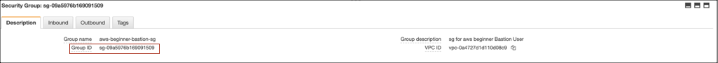 Bastion server의 보안그룹 아이디는 EC2 > Security Group 의 상세 탭에서 확인할 수 있습니다.