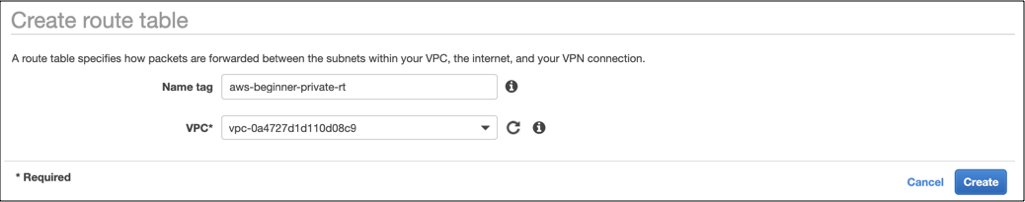 VPC > Route Tables > Create Route table