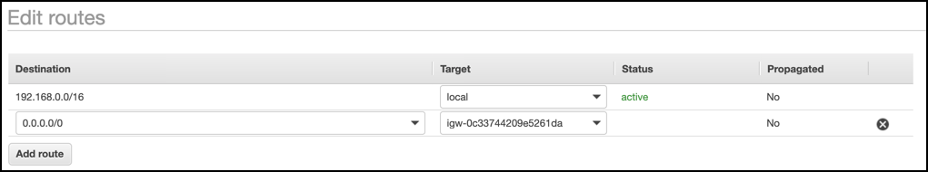 생성한 Routing 테이블의 Route 탭 > Edit Route 를 통해 IGW 와의 라우팅을 허용해줍니다.