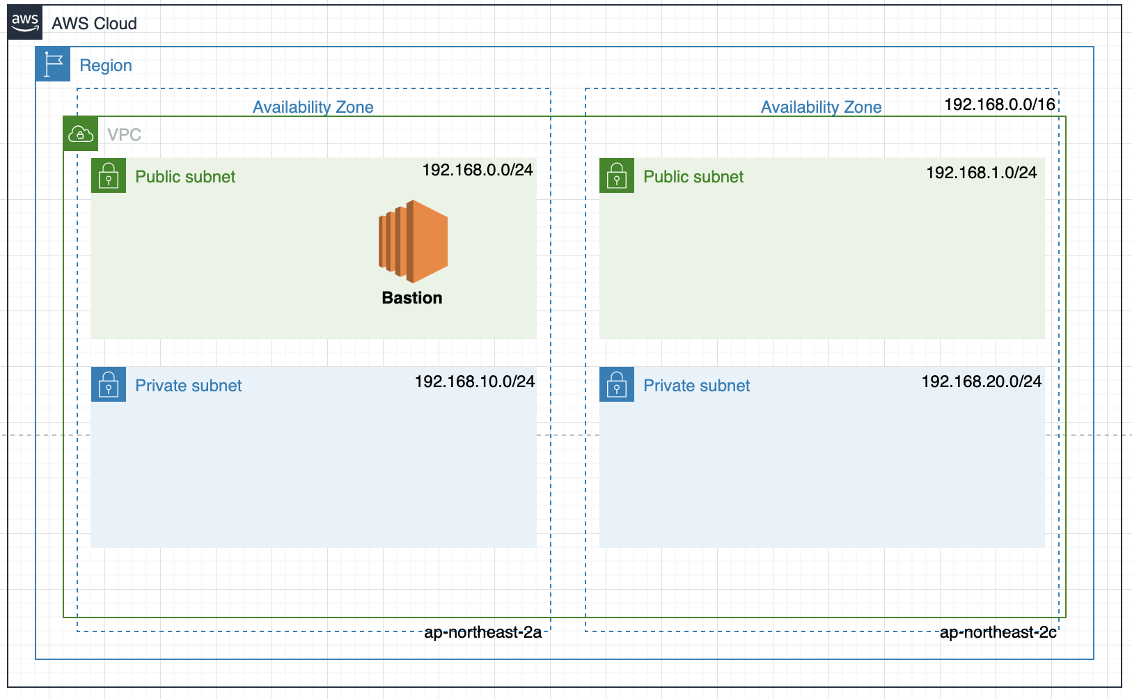 Bastion Server는 다른말로는 Jumping Host라고도 하며 인터넷 망에서 프라이빗 리소스에 접근하기 위해 거쳐가는 프록시 서버의 역할을 합니다. 즉, 어떤 특별한 기능을 하지 않고 오직 "거쳐가는 용도"입니다. 1편에서 말했다시피 같은 VPC 내부의 리소스는 서로 Private IP 로 접근가능하기 때문에 Bastion host를 외부망과 연결하고 관리자는 Bastion host에 접속하여 Private 리소스에 재접속하거나 터널링합니다.