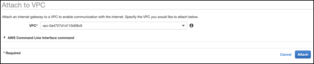 생성 후 Status를 확인하면 detached 되어있을 것입니다. 이 인스턴스를 선택하고 Action > Attach to VPC 를 선택합니다.