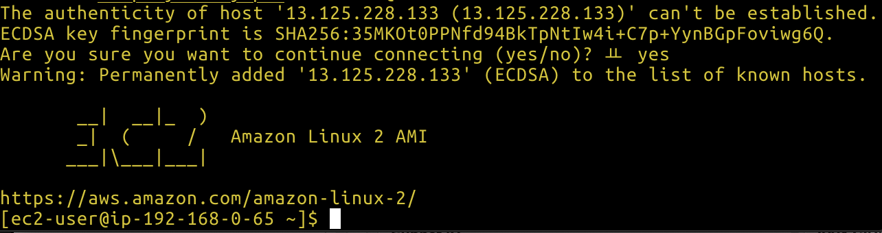 ssh -i [pemfile경로].pem ec2-user@[public-ip]