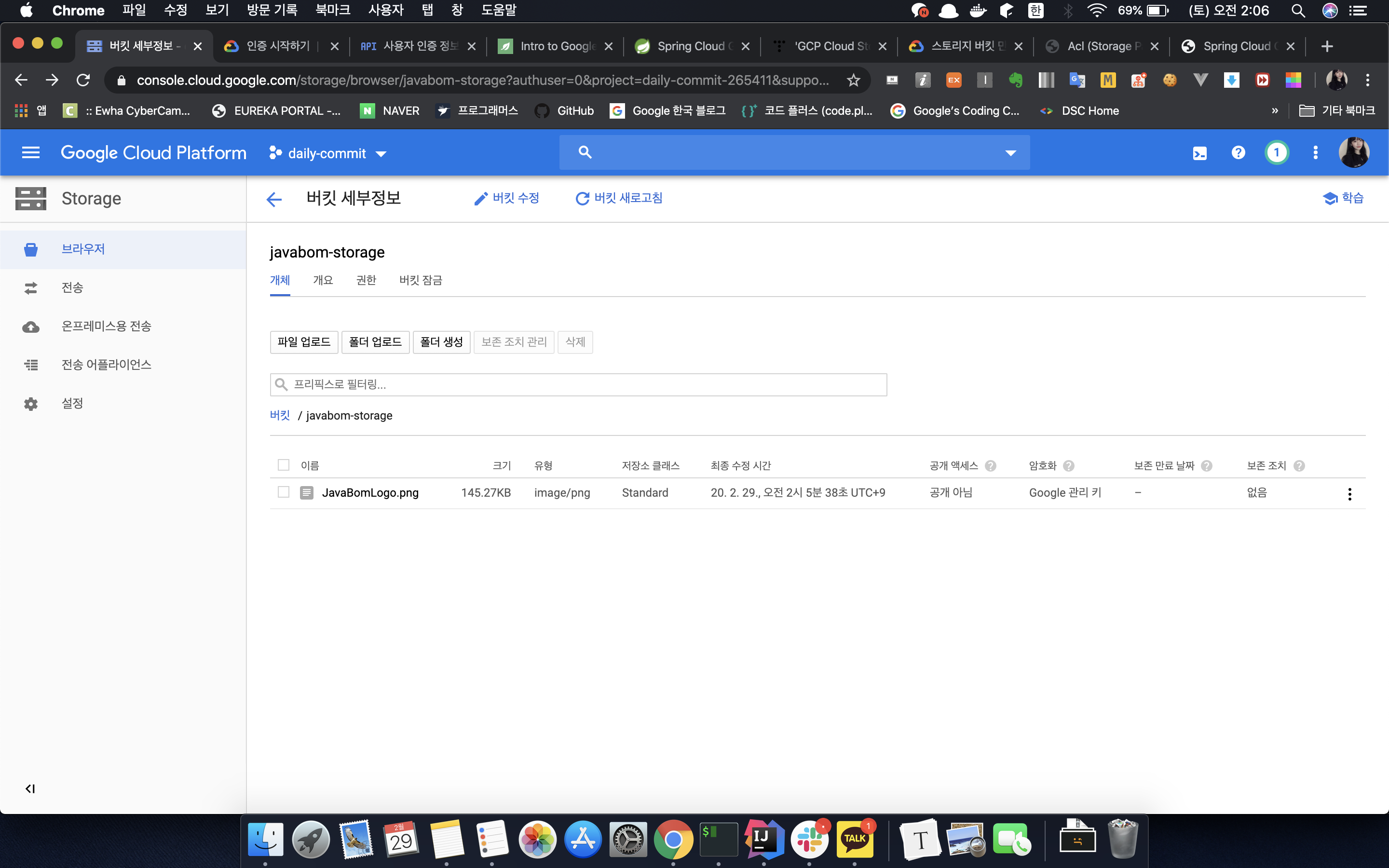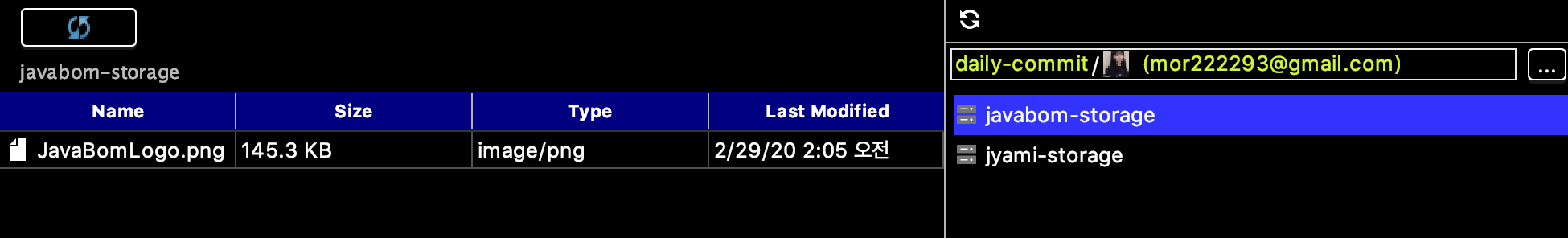 구글 콘솔이나 인텔리제이 플러그인으로 storage를 확인하면 아래와 같이 파일이 잘 업로드됨을 확인할 수 있다.