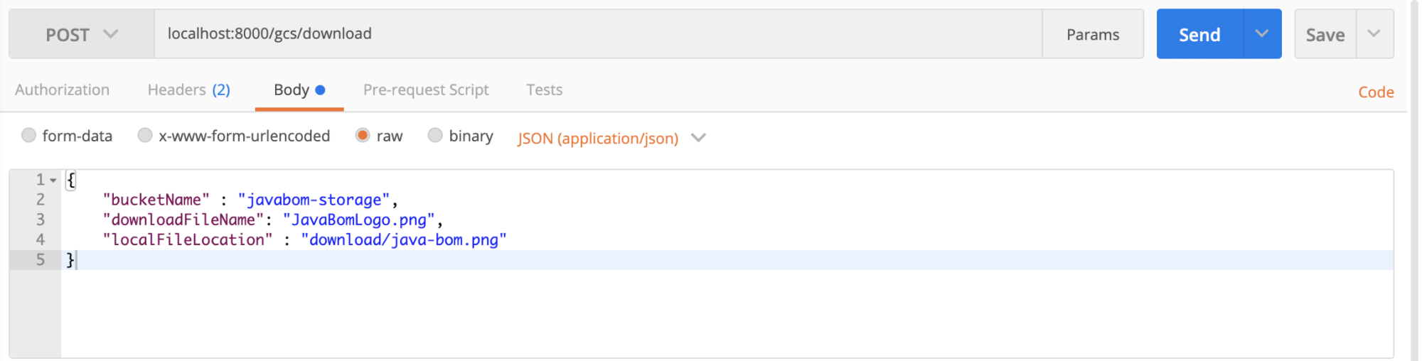 download 폴더를 추가해준 후, API를 호출하니 내 로컬 프로젝트 안에 GCS에 있던 파일은 java-bom.png파일이 잘 다운로드됨을 확인할 수 있다.