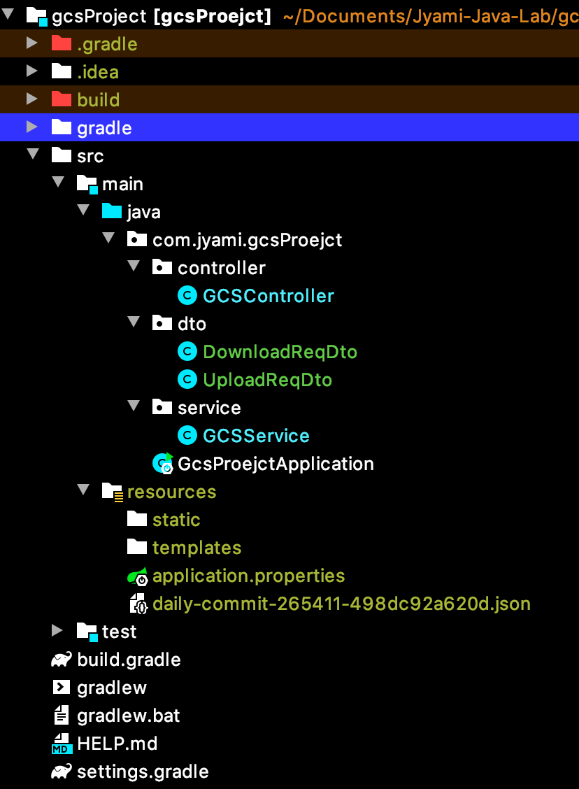 이제는 생성된 서비스 계정의 정보를 가진 json 키를 springboot에 넣어, springboot 내에서 GCS의 객체에 접근할 수 있게 만들 것이다.