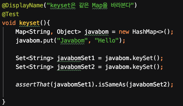 javabomSet1, javabomSet2 는 모두 같은 Map 의 key Set 을 반환한다.
