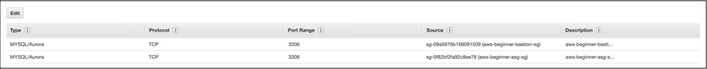 EC2 > SecurityGroups > aws-beginner-db-sg Inbound Edit 선택