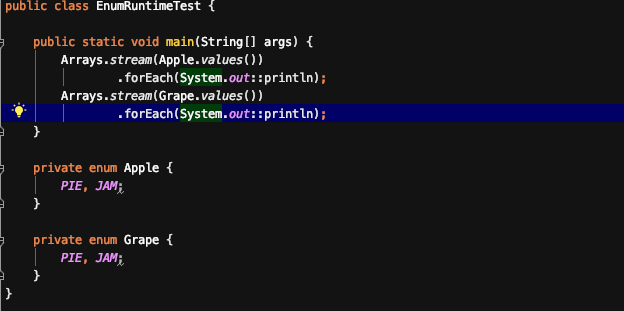 System.out.println(APPLIE_PIE); // APPLIE_PIE 가 아닌 0이 출력!