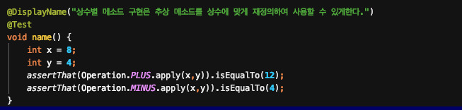 여기서 상수별 메소드 구현을 사용하면 조금 더 나은 방식으로 개선할 수 있다.