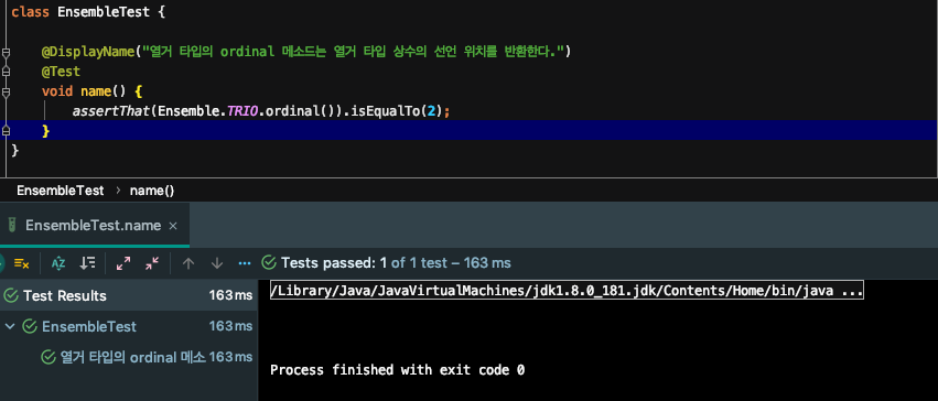 위의 열거 타입에서 TRIO의 ordinal 값은 무엇일까? 선언된 순서로 ordinal의 값이 정해진다고 하였으니 TRIO의 ordinal 값은 2일 것이다.