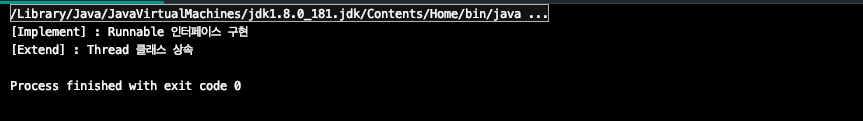 실행방법은 Thread 인스턴스를 생성할때 생성자의 매개값으로 Runnable 구현 객체를 넘겨주고 생성한 Thread 인스턴스의 start() 메소드를 호출하면 된다.