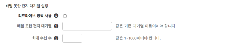 - 전송받지 못한 메시지를 담아놓을 DLQ를 만들건지에 대한 설정