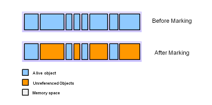 참조되는 객체와 참조되고 있지않은 객체를 식별하고 참조되는 객체를 Marking 하는 'Mark'