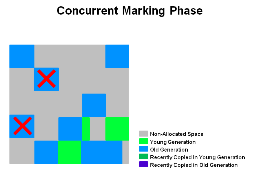 힙 내의 모든 Old 영역에 대해 GC 대상을 식별한다. 또한 Region에 모든 객체가 Garbage라 판단되면 Remark 단계에서 즉시 제거된 다. Stop-The-World를 발생시키지 않지만 Young GC에 의해 중단될 수 있다.