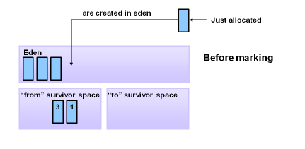 1. 새로운 객체가 Eden 영역에 할당된다.
