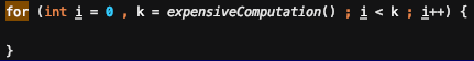 반복 여부를 결정짓는 변수 i 의 한계값을 변수 k 에 저장하여, 반복 때마다 다시 계산하는 비용을 없앴다. 같은 값을 반환하는 메소드를 매번 호출한다면 이런 관용구를 사용하면 좋을 것이다.